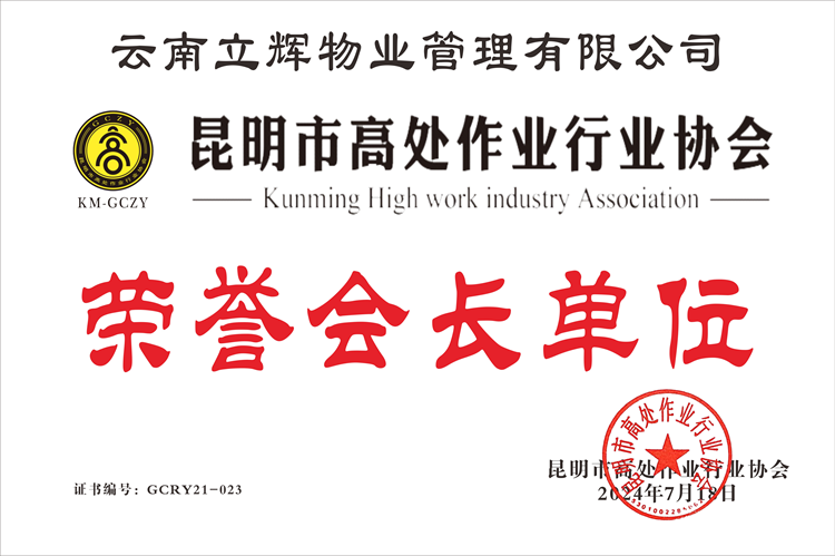 云南立辉物业管理有限公司——荣誉会长单位 -- 昆明市高处作业行业协会